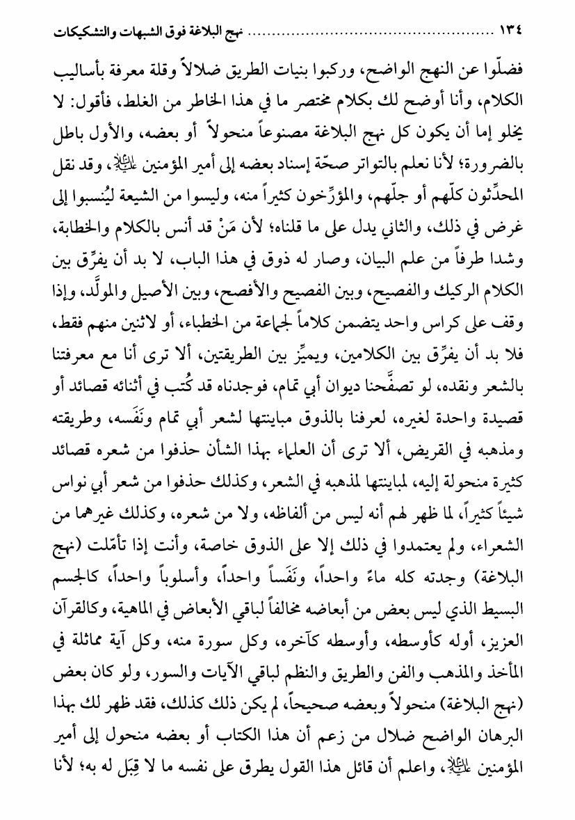 نهج البلاغة، فوق الشبهات والتشكيكات