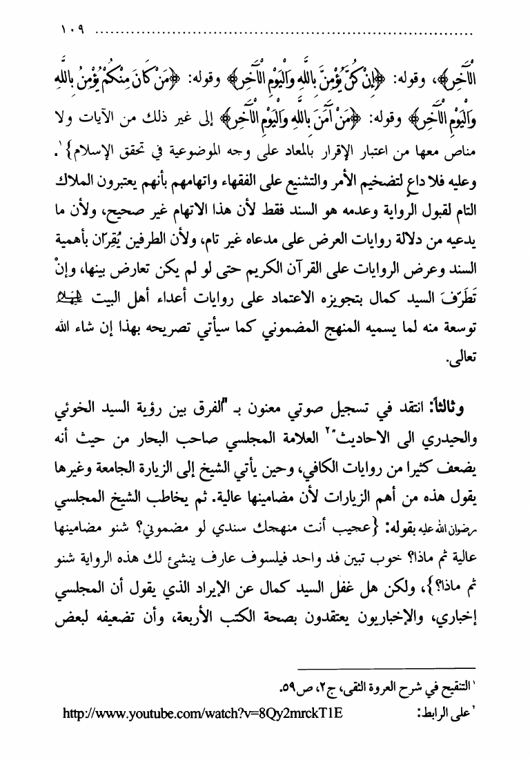 نام کتاب : قراءة نقدية، لبعض أفكار السيد كمال الحيدري عن المرجعية، ويليه مؤلفات الإمامية في العقائد والتفسير نویسنده : السيد أبو الصاحب الشريفي جلد : 1 صفحه : 109