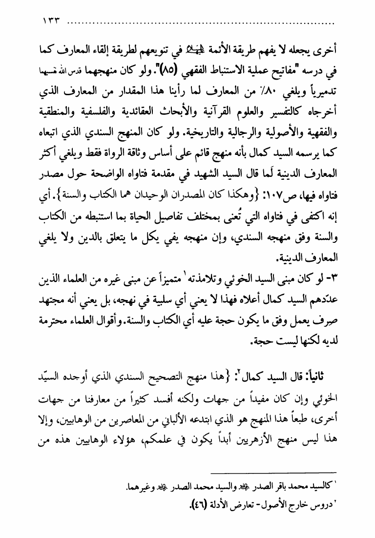 نام کتاب : قراءة نقدية، لبعض أفكار السيد كمال الحيدري عن المرجعية، ويليه مؤلفات الإمامية في العقائد والتفسير نویسنده : السيد أبو الصاحب الشريفي جلد : 1 صفحه : 133