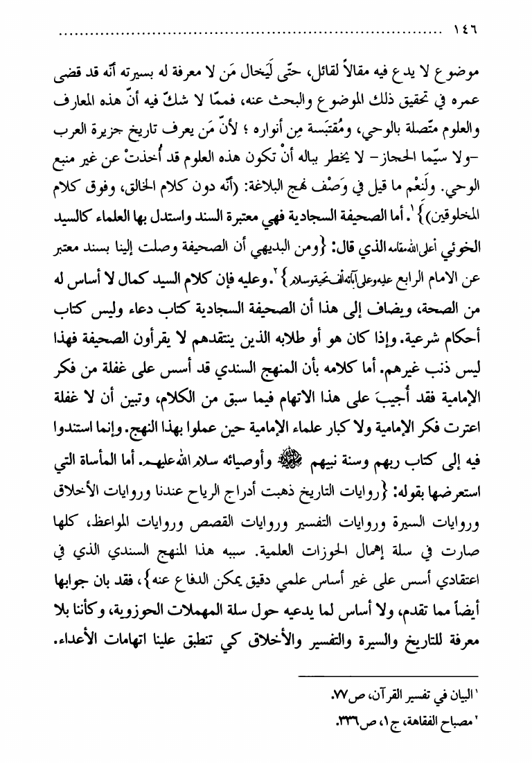 نام کتاب : قراءة نقدية، لبعض أفكار السيد كمال الحيدري عن المرجعية، ويليه مؤلفات الإمامية في العقائد والتفسير نویسنده : السيد أبو الصاحب الشريفي جلد : 1 صفحه : 146