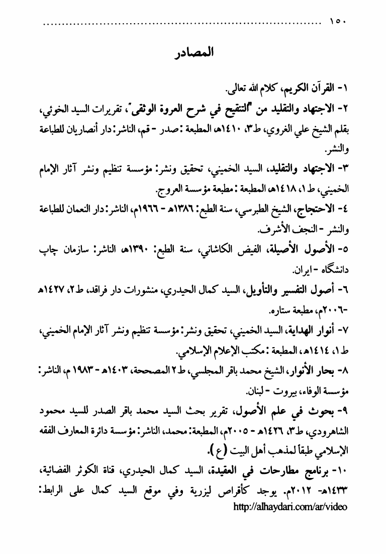 نام کتاب : قراءة نقدية، لبعض أفكار السيد كمال الحيدري عن المرجعية، ويليه مؤلفات الإمامية في العقائد والتفسير نویسنده : السيد أبو الصاحب الشريفي جلد : 1 صفحه : 150