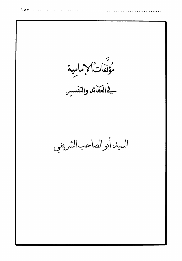 نام کتاب : قراءة نقدية، لبعض أفكار السيد كمال الحيدري عن المرجعية، ويليه مؤلفات الإمامية في العقائد والتفسير نویسنده : السيد أبو الصاحب الشريفي جلد : 1 صفحه : 157