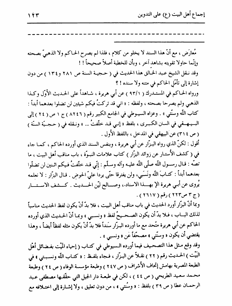 نام کتاب : تدوين السنة الشريفة، بدايته المبكرة في عهد الرسول ص ومصيره في عهود الخلفاء إلى نهاية القرن الأول نویسنده : السيد محمد رضا الحسيني الجلالي جلد : 1 صفحه : 123