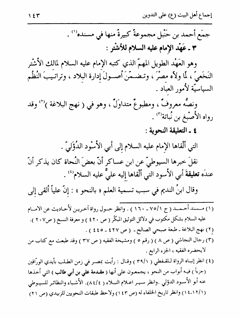 نام کتاب : تدوين السنة الشريفة، بدايته المبكرة في عهد الرسول ص ومصيره في عهود الخلفاء إلى نهاية القرن الأول نویسنده : السيد محمد رضا الحسيني الجلالي جلد : 1 صفحه : 143