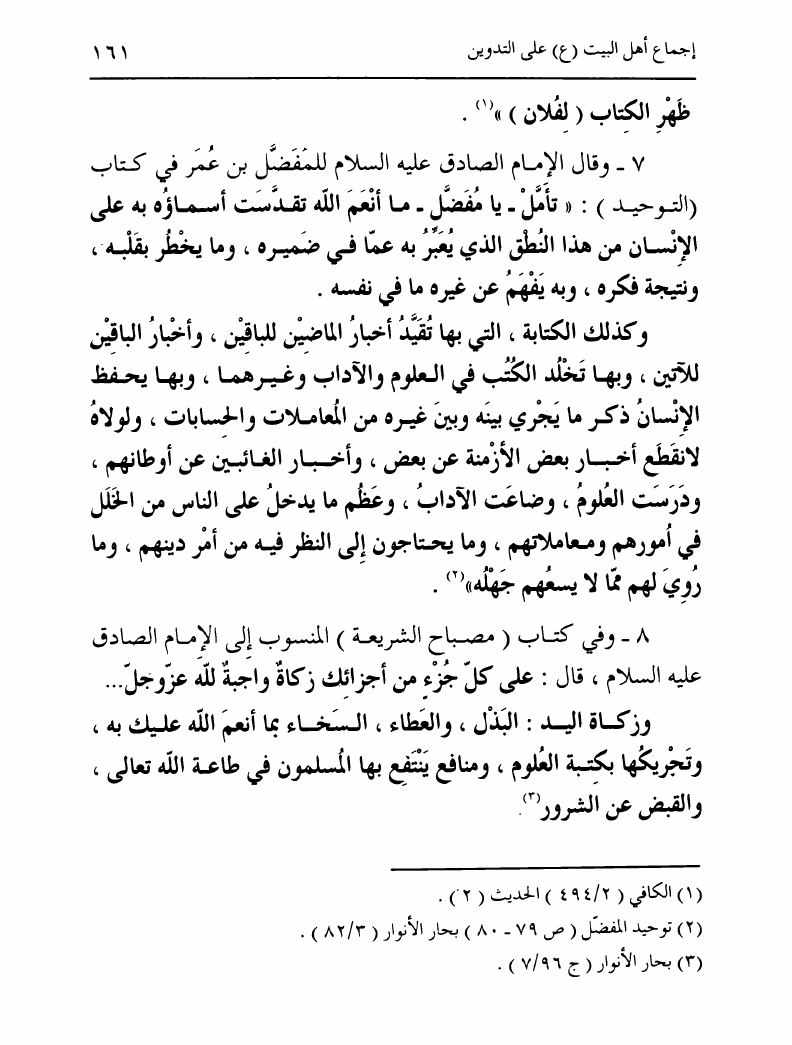 نام کتاب : تدوين السنة الشريفة، بدايته المبكرة في عهد الرسول ص ومصيره في عهود الخلفاء إلى نهاية القرن الأول نویسنده : السيد محمد رضا الحسيني الجلالي جلد : 1 صفحه : 161