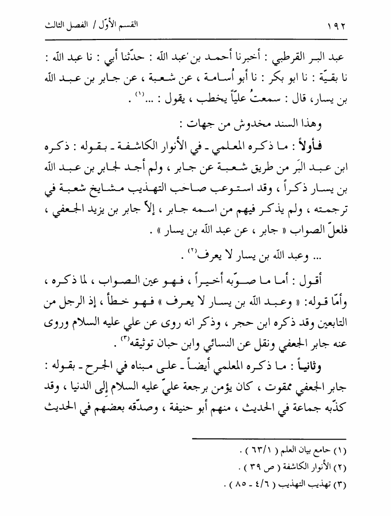 نام کتاب : تدوين السنة الشريفة، بدايته المبكرة في عهد الرسول ص ومصيره في عهود الخلفاء إلى نهاية القرن الأول نویسنده : السيد محمد رضا الحسيني الجلالي جلد : 1 صفحه : 192