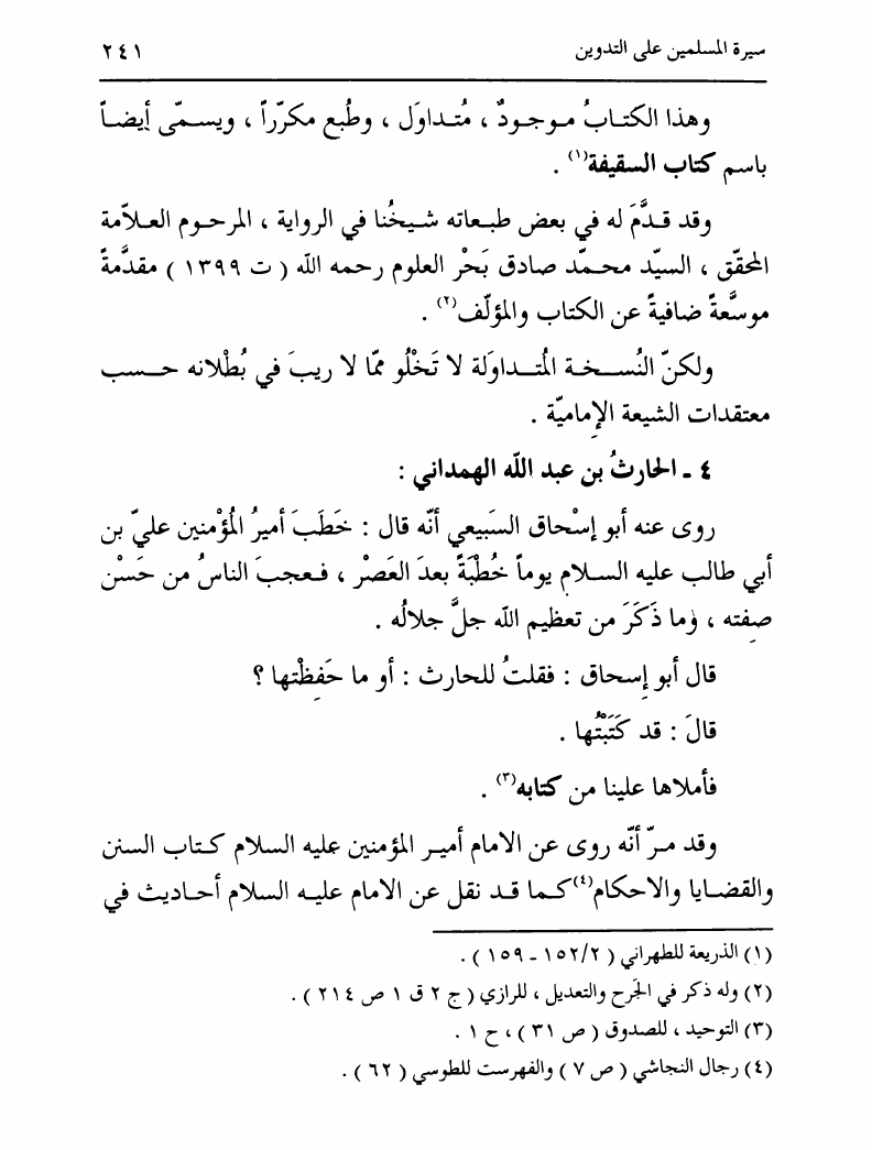 نام کتاب : تدوين السنة الشريفة، بدايته المبكرة في عهد الرسول ص ومصيره في عهود الخلفاء إلى نهاية القرن الأول نویسنده : السيد محمد رضا الحسيني الجلالي جلد : 1 صفحه : 241