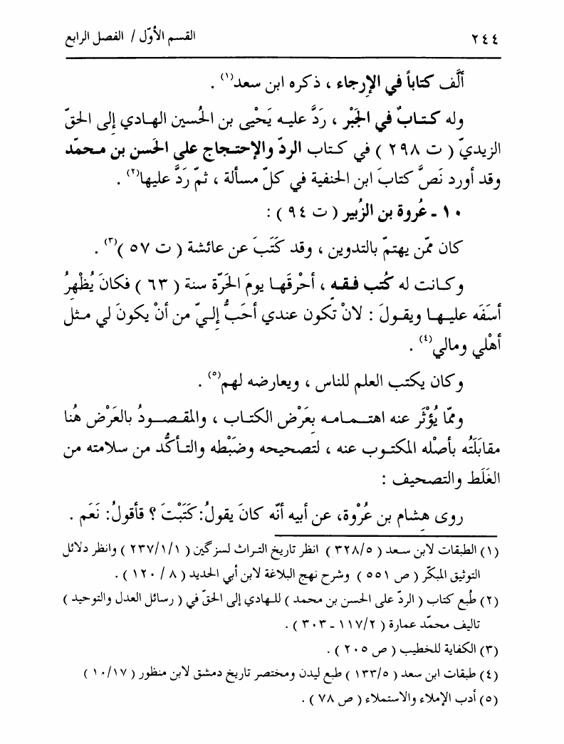 نام کتاب : تدوين السنة الشريفة، بدايته المبكرة في عهد الرسول ص ومصيره في عهود الخلفاء إلى نهاية القرن الأول نویسنده : السيد محمد رضا الحسيني الجلالي جلد : 1 صفحه : 244
