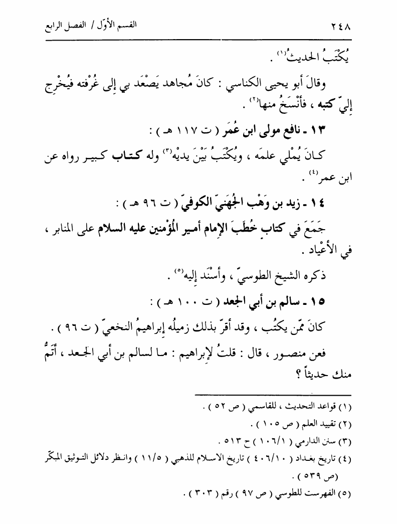 نام کتاب : تدوين السنة الشريفة، بدايته المبكرة في عهد الرسول ص ومصيره في عهود الخلفاء إلى نهاية القرن الأول نویسنده : السيد محمد رضا الحسيني الجلالي جلد : 1 صفحه : 248