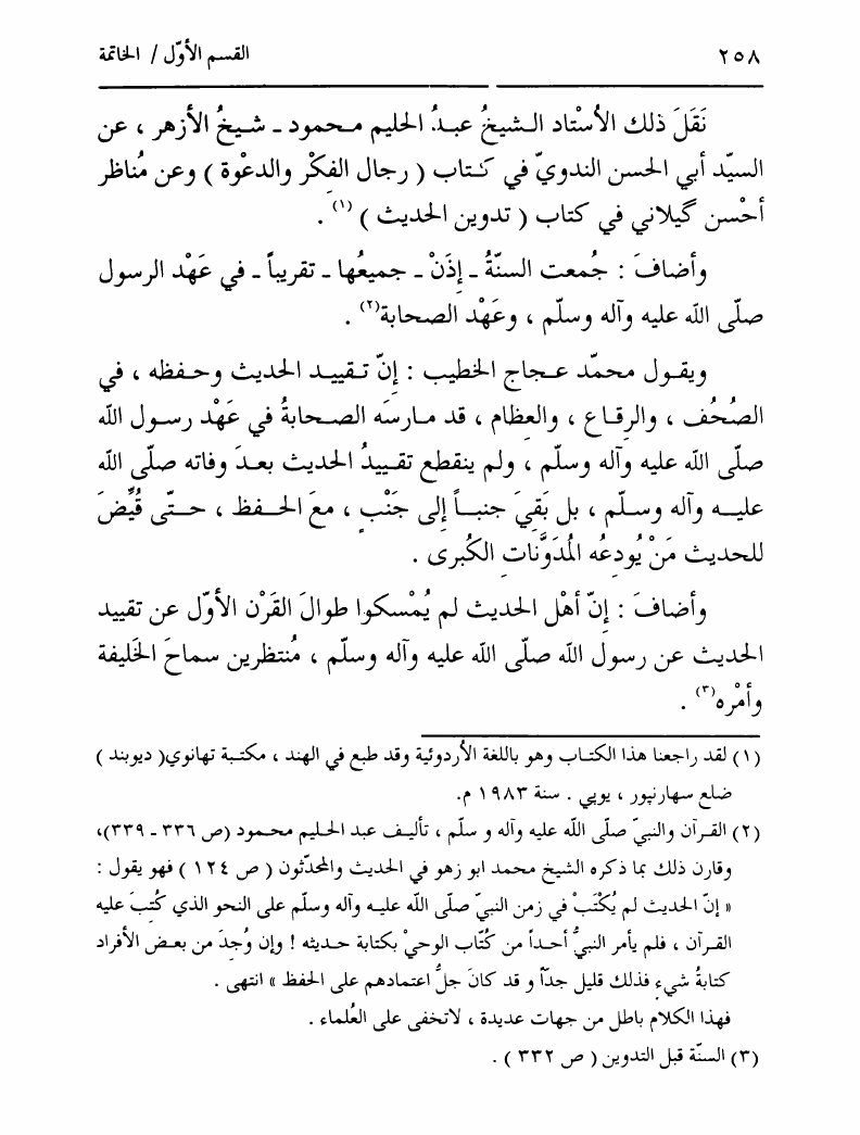 نام کتاب : تدوين السنة الشريفة، بدايته المبكرة في عهد الرسول ص ومصيره في عهود الخلفاء إلى نهاية القرن الأول نویسنده : السيد محمد رضا الحسيني الجلالي جلد : 1 صفحه : 258