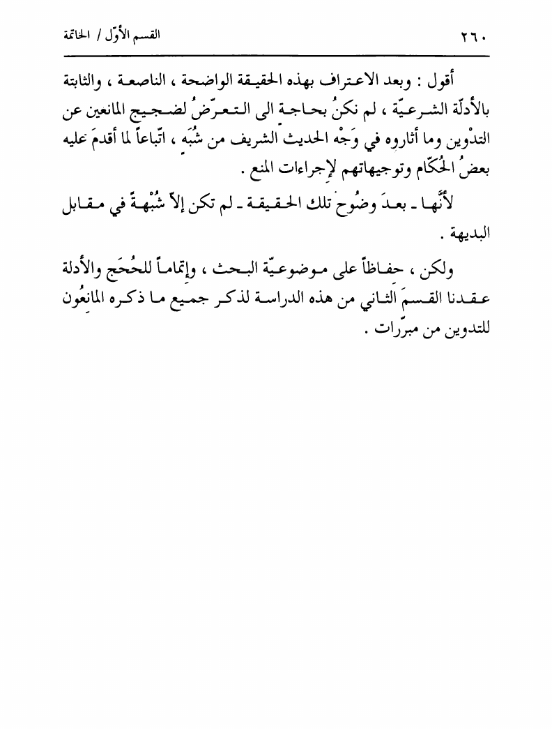 نام کتاب : تدوين السنة الشريفة، بدايته المبكرة في عهد الرسول ص ومصيره في عهود الخلفاء إلى نهاية القرن الأول نویسنده : السيد محمد رضا الحسيني الجلالي جلد : 1 صفحه : 260