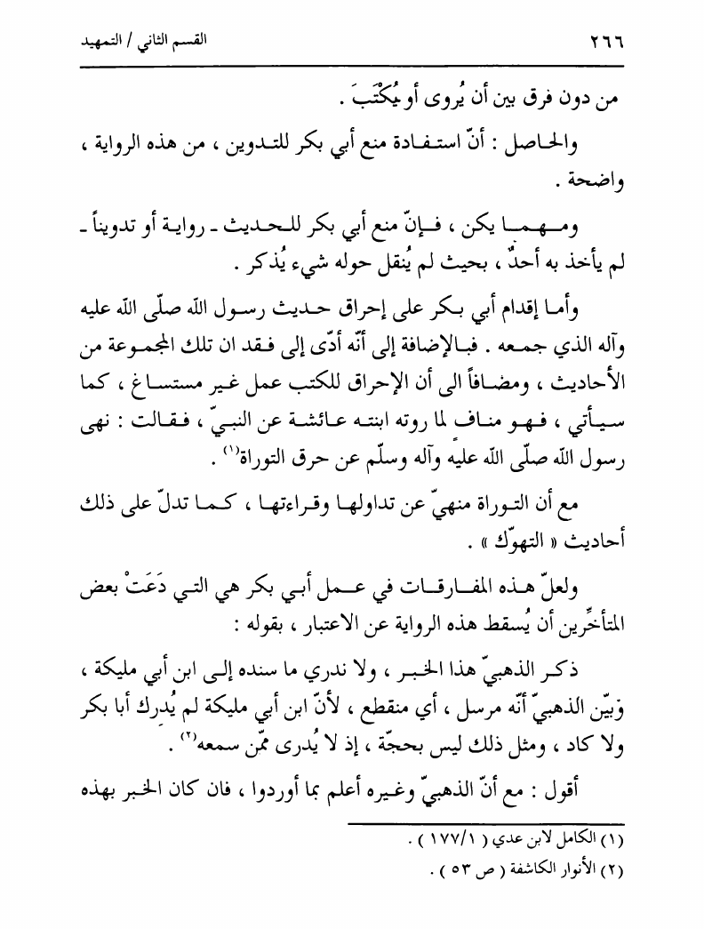 نام کتاب : تدوين السنة الشريفة، بدايته المبكرة في عهد الرسول ص ومصيره في عهود الخلفاء إلى نهاية القرن الأول نویسنده : السيد محمد رضا الحسيني الجلالي جلد : 1 صفحه : 266