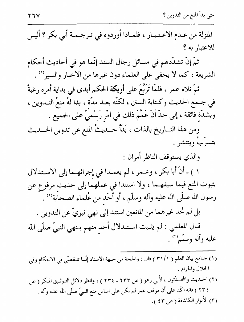 نام کتاب : تدوين السنة الشريفة، بدايته المبكرة في عهد الرسول ص ومصيره في عهود الخلفاء إلى نهاية القرن الأول نویسنده : السيد محمد رضا الحسيني الجلالي جلد : 1 صفحه : 267