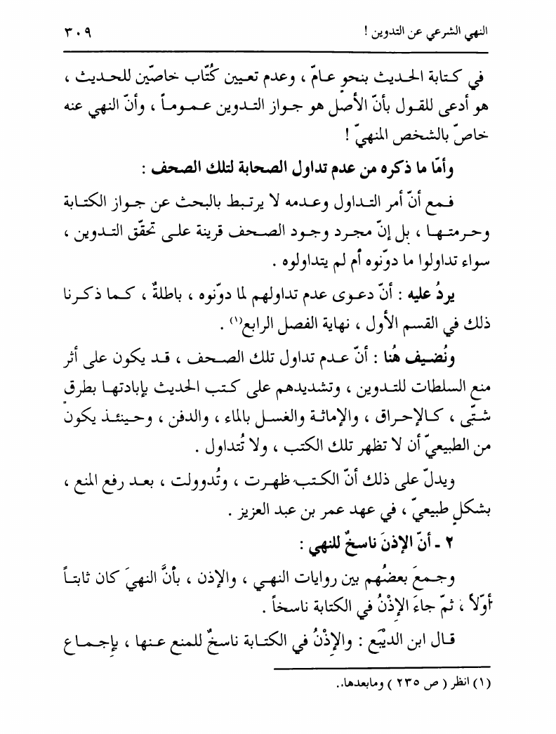 نام کتاب : تدوين السنة الشريفة، بدايته المبكرة في عهد الرسول ص ومصيره في عهود الخلفاء إلى نهاية القرن الأول نویسنده : السيد محمد رضا الحسيني الجلالي جلد : 1 صفحه : 309