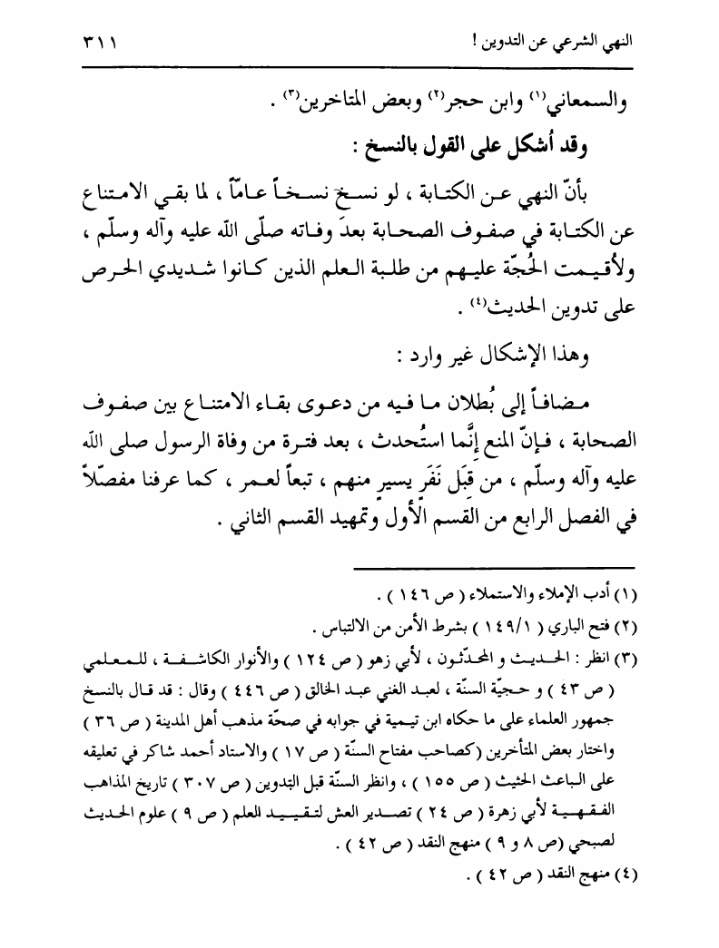 نام کتاب : تدوين السنة الشريفة، بدايته المبكرة في عهد الرسول ص ومصيره في عهود الخلفاء إلى نهاية القرن الأول نویسنده : السيد محمد رضا الحسيني الجلالي جلد : 1 صفحه : 311