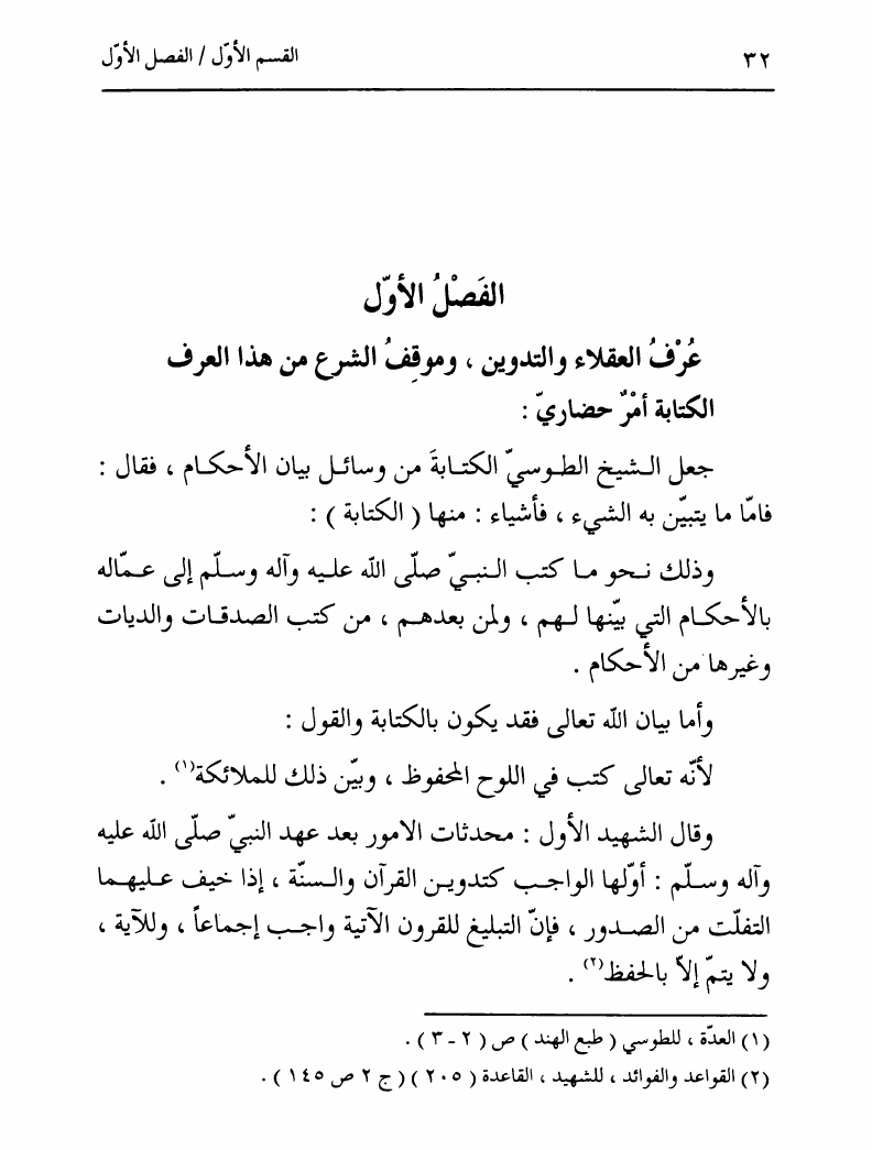 نام کتاب : تدوين السنة الشريفة، بدايته المبكرة في عهد الرسول ص ومصيره في عهود الخلفاء إلى نهاية القرن الأول نویسنده : السيد محمد رضا الحسيني الجلالي جلد : 1 صفحه : 32