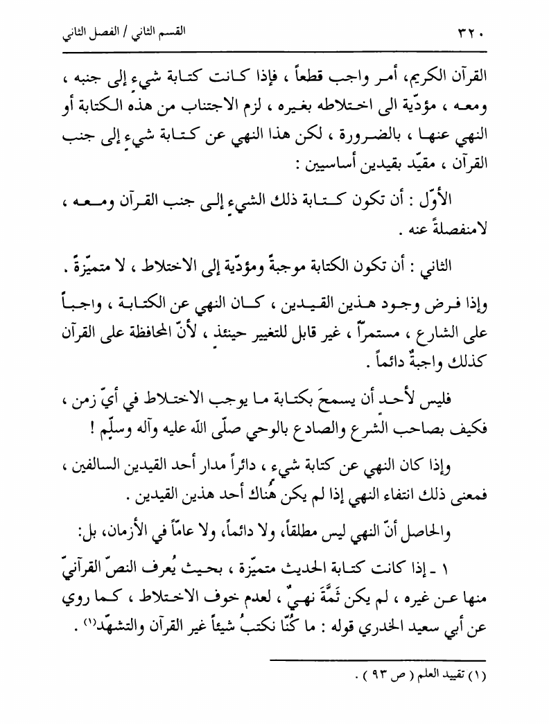 نام کتاب : تدوين السنة الشريفة، بدايته المبكرة في عهد الرسول ص ومصيره في عهود الخلفاء إلى نهاية القرن الأول نویسنده : السيد محمد رضا الحسيني الجلالي جلد : 1 صفحه : 320