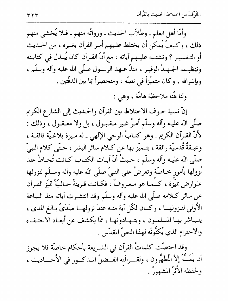 نام کتاب : تدوين السنة الشريفة، بدايته المبكرة في عهد الرسول ص ومصيره في عهود الخلفاء إلى نهاية القرن الأول نویسنده : السيد محمد رضا الحسيني الجلالي جلد : 1 صفحه : 323