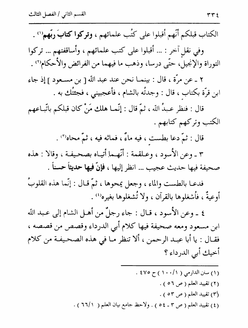 نام کتاب : تدوين السنة الشريفة، بدايته المبكرة في عهد الرسول ص ومصيره في عهود الخلفاء إلى نهاية القرن الأول نویسنده : السيد محمد رضا الحسيني الجلالي جلد : 1 صفحه : 334