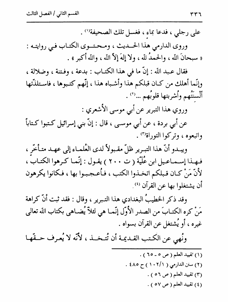 نام کتاب : تدوين السنة الشريفة، بدايته المبكرة في عهد الرسول ص ومصيره في عهود الخلفاء إلى نهاية القرن الأول نویسنده : السيد محمد رضا الحسيني الجلالي جلد : 1 صفحه : 336