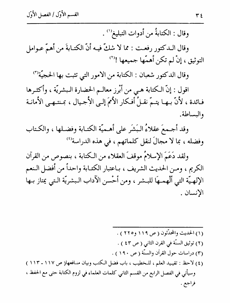 نام کتاب : تدوين السنة الشريفة، بدايته المبكرة في عهد الرسول ص ومصيره في عهود الخلفاء إلى نهاية القرن الأول نویسنده : السيد محمد رضا الحسيني الجلالي جلد : 1 صفحه : 34