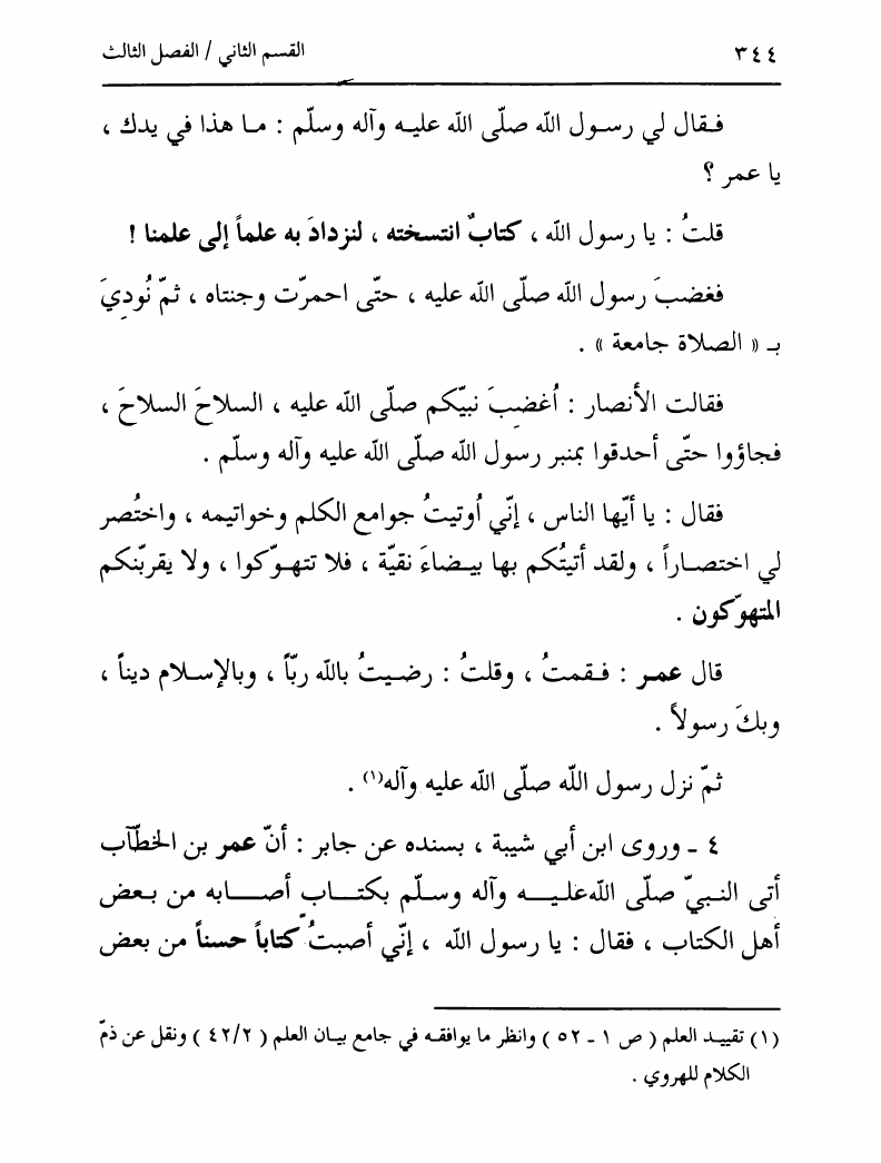 نام کتاب : تدوين السنة الشريفة، بدايته المبكرة في عهد الرسول ص ومصيره في عهود الخلفاء إلى نهاية القرن الأول نویسنده : السيد محمد رضا الحسيني الجلالي جلد : 1 صفحه : 344