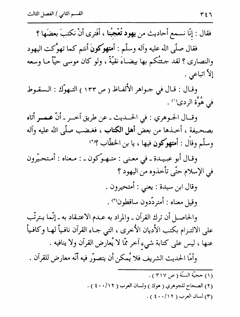 نام کتاب : تدوين السنة الشريفة، بدايته المبكرة في عهد الرسول ص ومصيره في عهود الخلفاء إلى نهاية القرن الأول نویسنده : السيد محمد رضا الحسيني الجلالي جلد : 1 صفحه : 346