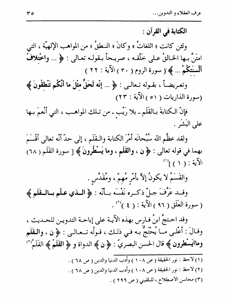نام کتاب : تدوين السنة الشريفة، بدايته المبكرة في عهد الرسول ص ومصيره في عهود الخلفاء إلى نهاية القرن الأول نویسنده : السيد محمد رضا الحسيني الجلالي جلد : 1 صفحه : 35