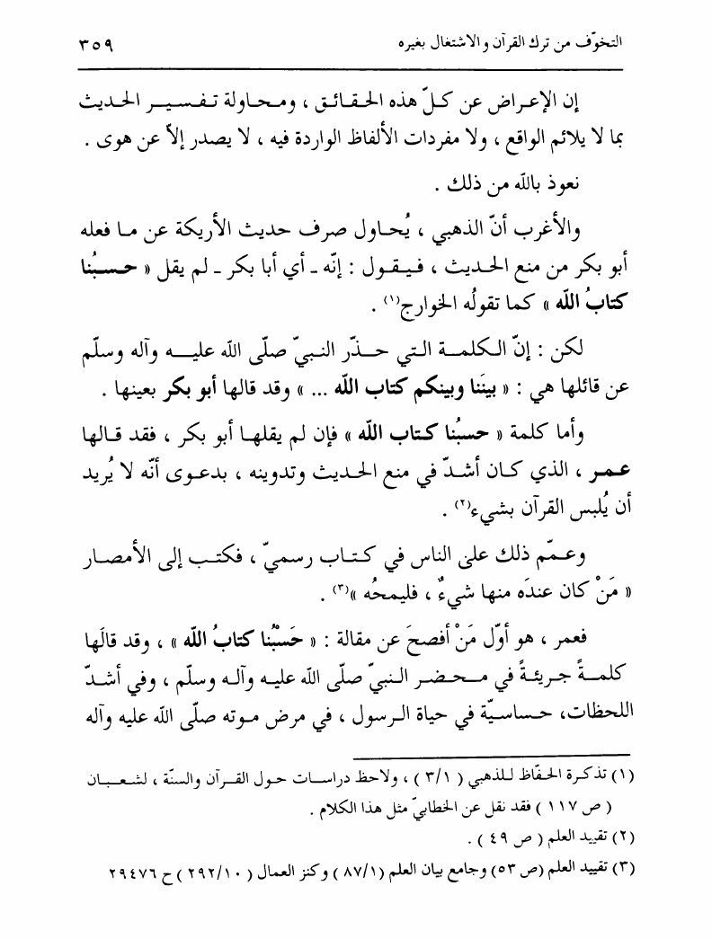 نام کتاب : تدوين السنة الشريفة، بدايته المبكرة في عهد الرسول ص ومصيره في عهود الخلفاء إلى نهاية القرن الأول نویسنده : السيد محمد رضا الحسيني الجلالي جلد : 1 صفحه : 359