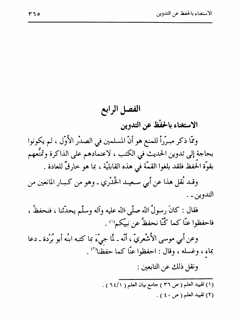 نام کتاب : تدوين السنة الشريفة، بدايته المبكرة في عهد الرسول ص ومصيره في عهود الخلفاء إلى نهاية القرن الأول نویسنده : السيد محمد رضا الحسيني الجلالي جلد : 1 صفحه : 365