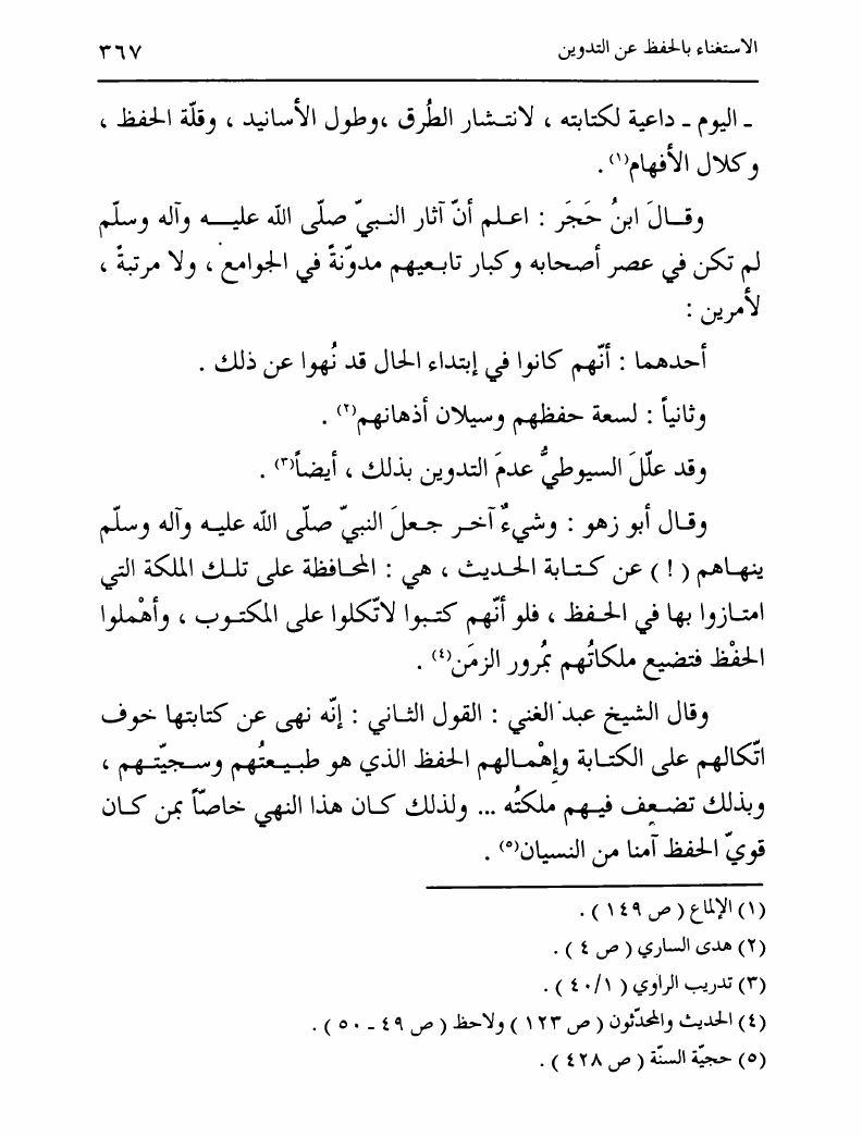 نام کتاب : تدوين السنة الشريفة، بدايته المبكرة في عهد الرسول ص ومصيره في عهود الخلفاء إلى نهاية القرن الأول نویسنده : السيد محمد رضا الحسيني الجلالي جلد : 1 صفحه : 367