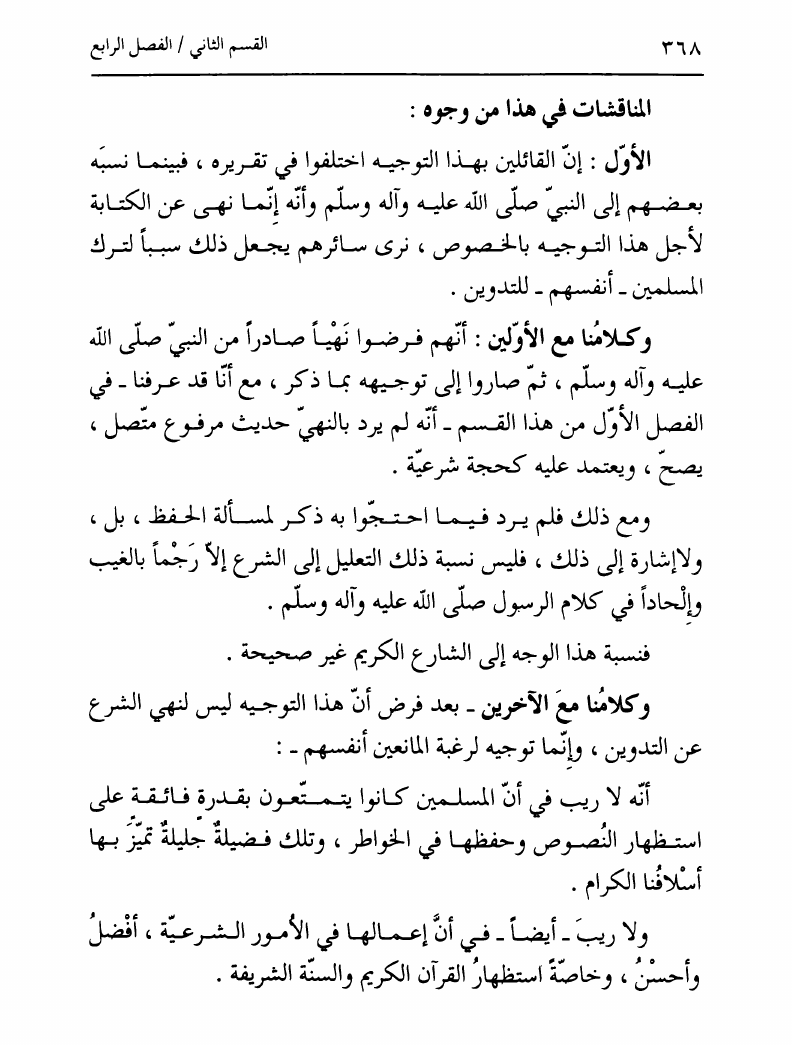 نام کتاب : تدوين السنة الشريفة، بدايته المبكرة في عهد الرسول ص ومصيره في عهود الخلفاء إلى نهاية القرن الأول نویسنده : السيد محمد رضا الحسيني الجلالي جلد : 1 صفحه : 368