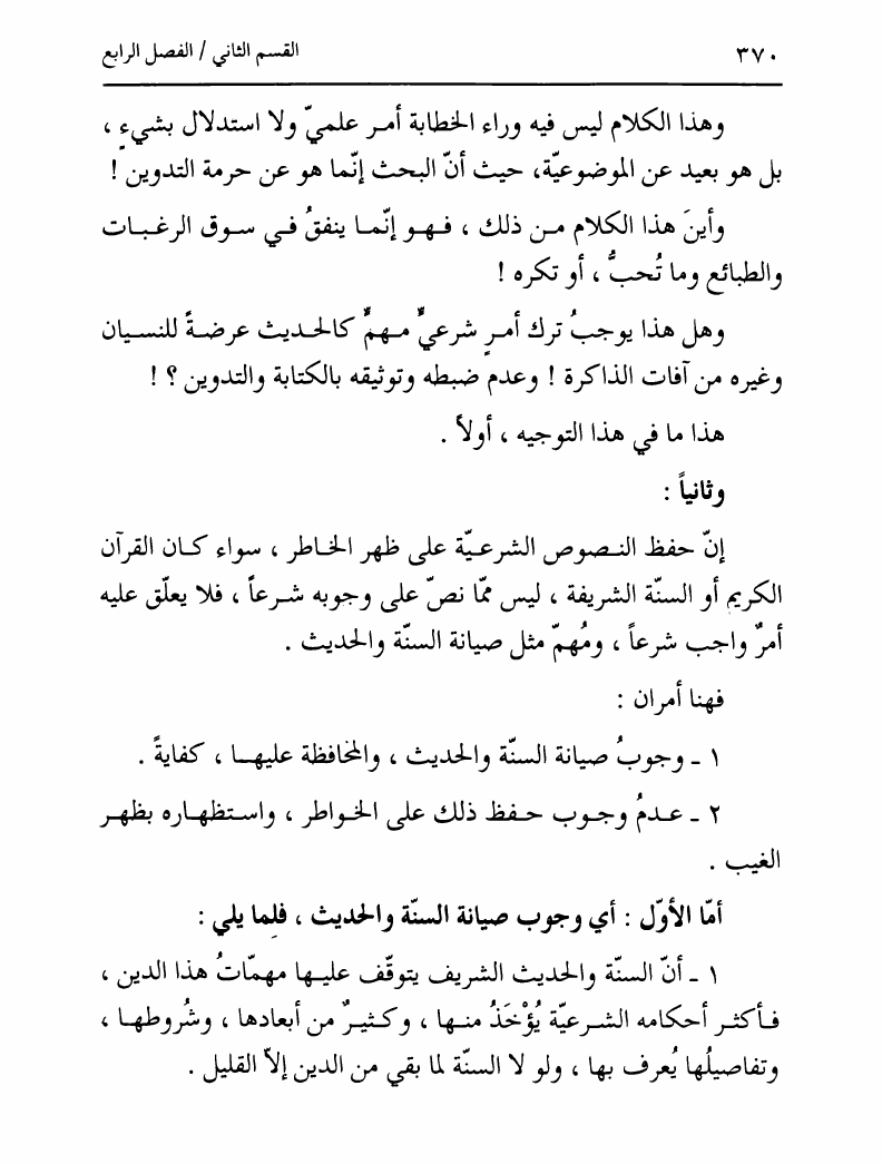نام کتاب : تدوين السنة الشريفة، بدايته المبكرة في عهد الرسول ص ومصيره في عهود الخلفاء إلى نهاية القرن الأول نویسنده : السيد محمد رضا الحسيني الجلالي جلد : 1 صفحه : 370