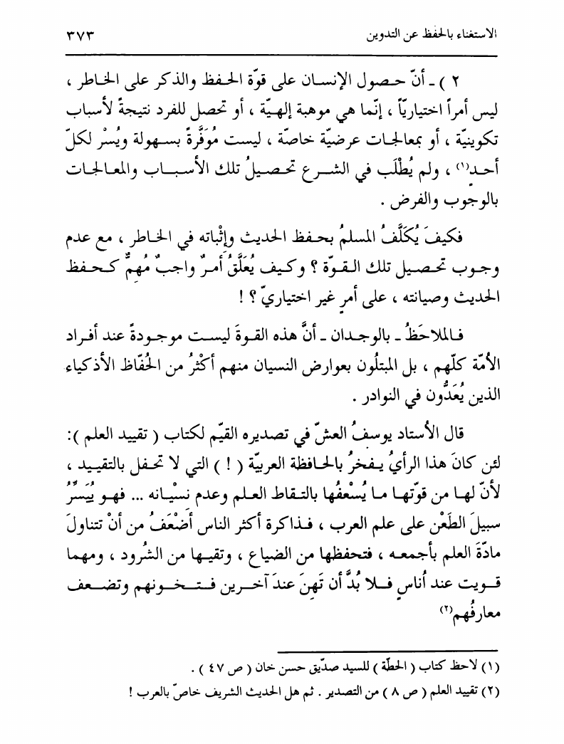 نام کتاب : تدوين السنة الشريفة، بدايته المبكرة في عهد الرسول ص ومصيره في عهود الخلفاء إلى نهاية القرن الأول نویسنده : السيد محمد رضا الحسيني الجلالي جلد : 1 صفحه : 373