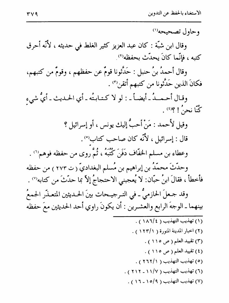 نام کتاب : تدوين السنة الشريفة، بدايته المبكرة في عهد الرسول ص ومصيره في عهود الخلفاء إلى نهاية القرن الأول نویسنده : السيد محمد رضا الحسيني الجلالي جلد : 1 صفحه : 379