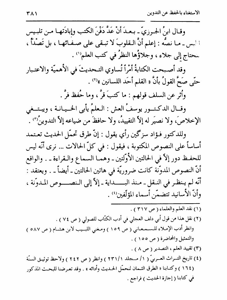 نام کتاب : تدوين السنة الشريفة، بدايته المبكرة في عهد الرسول ص ومصيره في عهود الخلفاء إلى نهاية القرن الأول نویسنده : السيد محمد رضا الحسيني الجلالي جلد : 1 صفحه : 381