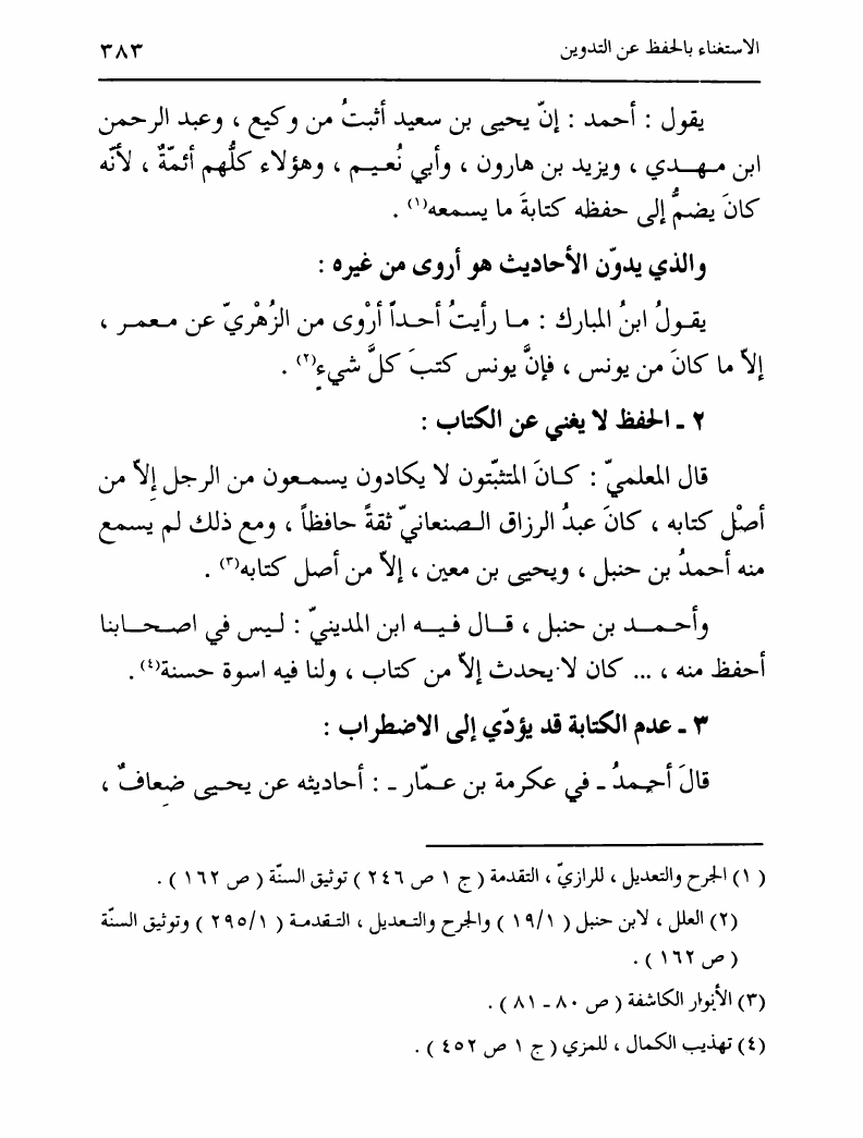 نام کتاب : تدوين السنة الشريفة، بدايته المبكرة في عهد الرسول ص ومصيره في عهود الخلفاء إلى نهاية القرن الأول نویسنده : السيد محمد رضا الحسيني الجلالي جلد : 1 صفحه : 383