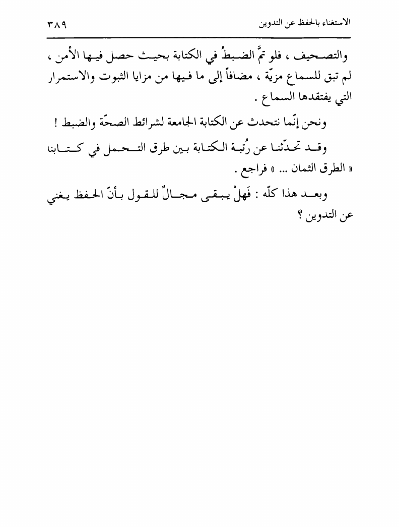 نام کتاب : تدوين السنة الشريفة، بدايته المبكرة في عهد الرسول ص ومصيره في عهود الخلفاء إلى نهاية القرن الأول نویسنده : السيد محمد رضا الحسيني الجلالي جلد : 1 صفحه : 389