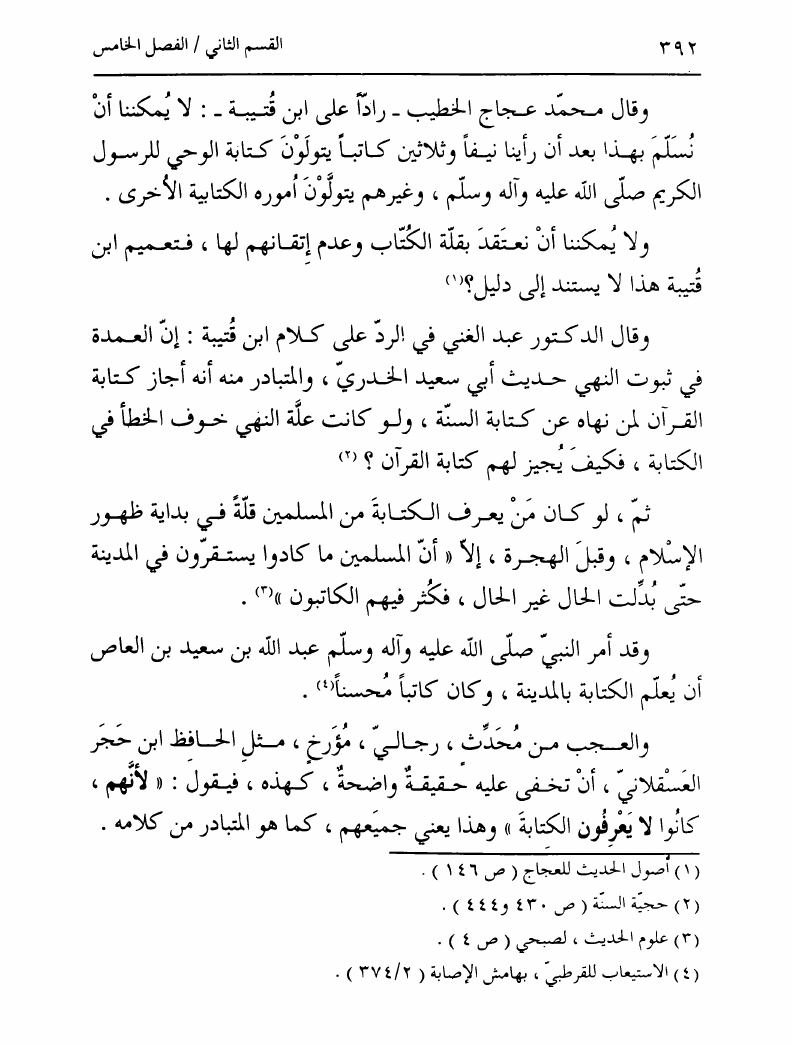 نام کتاب : تدوين السنة الشريفة، بدايته المبكرة في عهد الرسول ص ومصيره في عهود الخلفاء إلى نهاية القرن الأول نویسنده : السيد محمد رضا الحسيني الجلالي جلد : 1 صفحه : 392