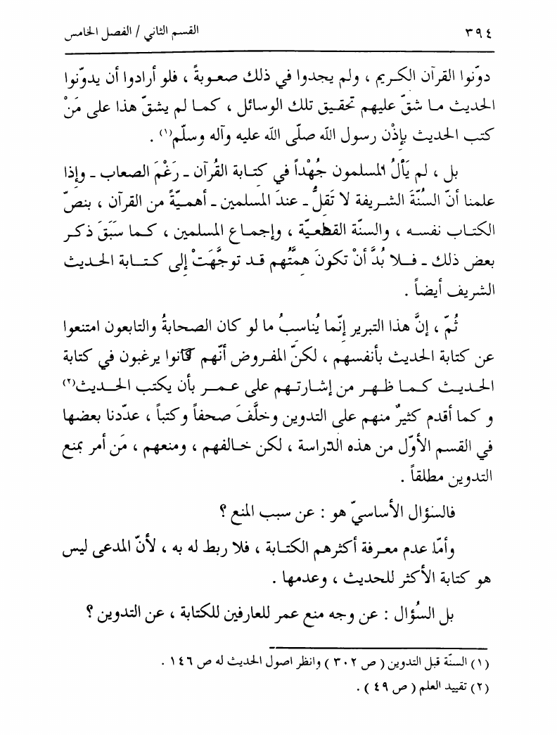 نام کتاب : تدوين السنة الشريفة، بدايته المبكرة في عهد الرسول ص ومصيره في عهود الخلفاء إلى نهاية القرن الأول نویسنده : السيد محمد رضا الحسيني الجلالي جلد : 1 صفحه : 394