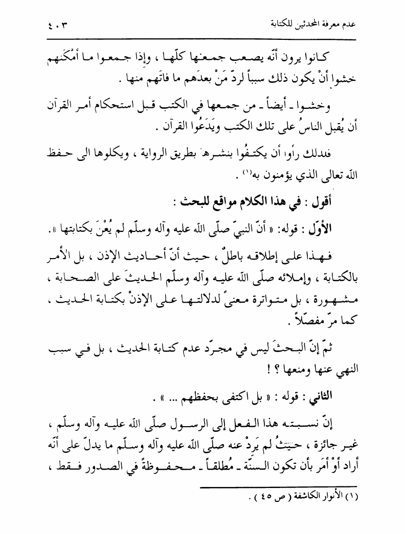 نام کتاب : تدوين السنة الشريفة، بدايته المبكرة في عهد الرسول ص ومصيره في عهود الخلفاء إلى نهاية القرن الأول نویسنده : السيد محمد رضا الحسيني الجلالي جلد : 1 صفحه : 403