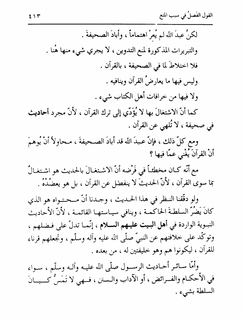 نام کتاب : تدوين السنة الشريفة، بدايته المبكرة في عهد الرسول ص ومصيره في عهود الخلفاء إلى نهاية القرن الأول نویسنده : السيد محمد رضا الحسيني الجلالي جلد : 1 صفحه : 413