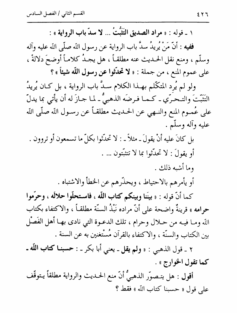 نام کتاب : تدوين السنة الشريفة، بدايته المبكرة في عهد الرسول ص ومصيره في عهود الخلفاء إلى نهاية القرن الأول نویسنده : السيد محمد رضا الحسيني الجلالي جلد : 1 صفحه : 426