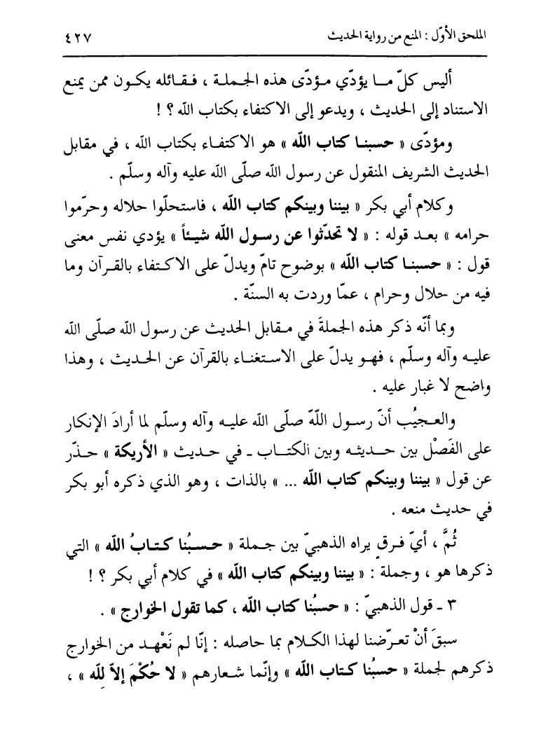 نام کتاب : تدوين السنة الشريفة، بدايته المبكرة في عهد الرسول ص ومصيره في عهود الخلفاء إلى نهاية القرن الأول نویسنده : السيد محمد رضا الحسيني الجلالي جلد : 1 صفحه : 427
