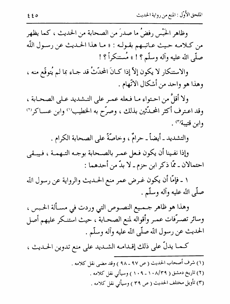 نام کتاب : تدوين السنة الشريفة، بدايته المبكرة في عهد الرسول ص ومصيره في عهود الخلفاء إلى نهاية القرن الأول نویسنده : السيد محمد رضا الحسيني الجلالي جلد : 1 صفحه : 445