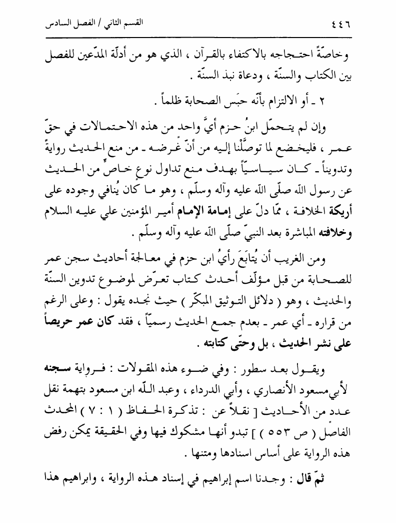 نام کتاب : تدوين السنة الشريفة، بدايته المبكرة في عهد الرسول ص ومصيره في عهود الخلفاء إلى نهاية القرن الأول نویسنده : السيد محمد رضا الحسيني الجلالي جلد : 1 صفحه : 446