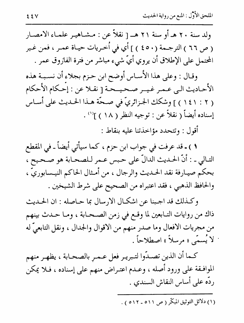 نام کتاب : تدوين السنة الشريفة، بدايته المبكرة في عهد الرسول ص ومصيره في عهود الخلفاء إلى نهاية القرن الأول نویسنده : السيد محمد رضا الحسيني الجلالي جلد : 1 صفحه : 447