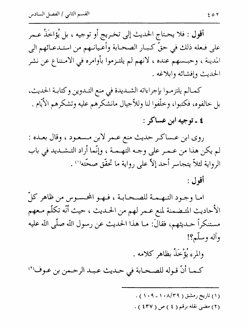 نام کتاب : تدوين السنة الشريفة، بدايته المبكرة في عهد الرسول ص ومصيره في عهود الخلفاء إلى نهاية القرن الأول نویسنده : السيد محمد رضا الحسيني الجلالي جلد : 1 صفحه : 452