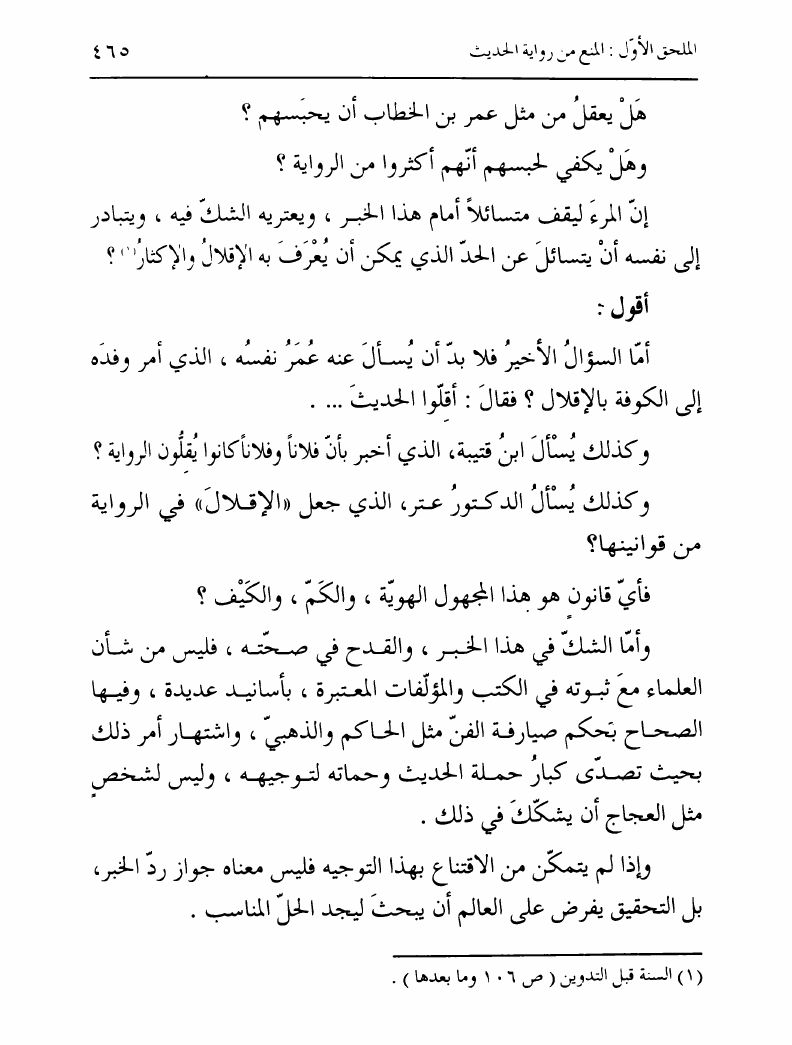 نام کتاب : تدوين السنة الشريفة، بدايته المبكرة في عهد الرسول ص ومصيره في عهود الخلفاء إلى نهاية القرن الأول نویسنده : السيد محمد رضا الحسيني الجلالي جلد : 1 صفحه : 465