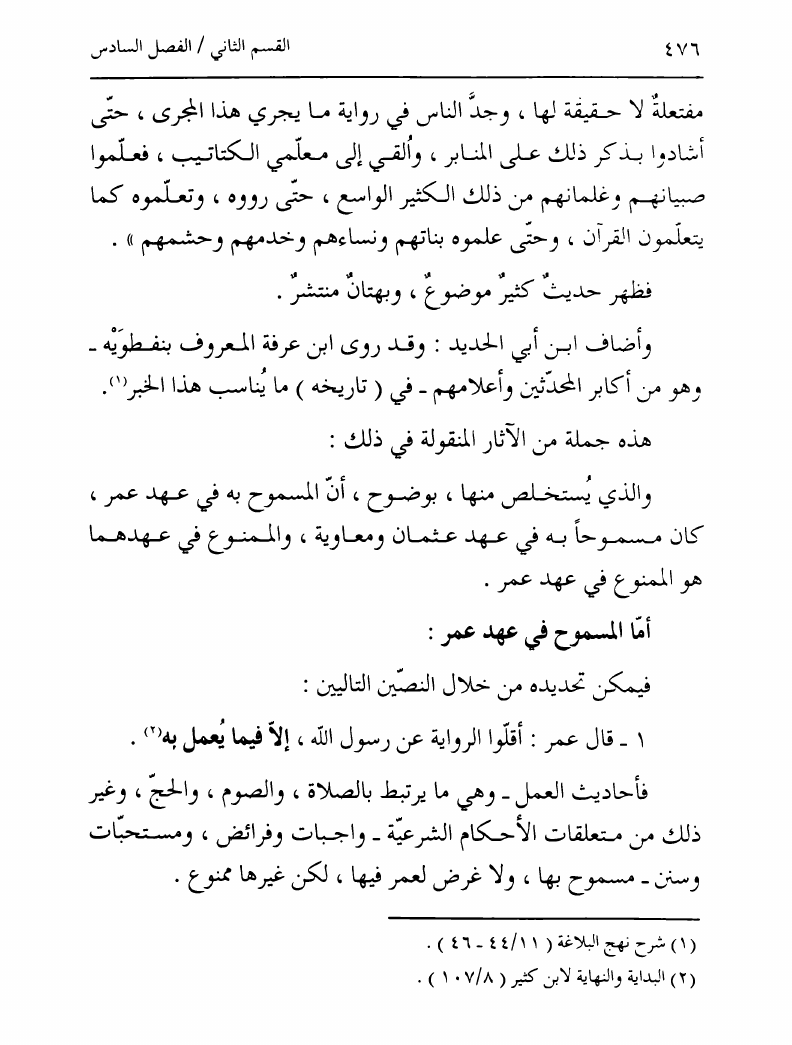 نام کتاب : تدوين السنة الشريفة، بدايته المبكرة في عهد الرسول ص ومصيره في عهود الخلفاء إلى نهاية القرن الأول نویسنده : السيد محمد رضا الحسيني الجلالي جلد : 1 صفحه : 476